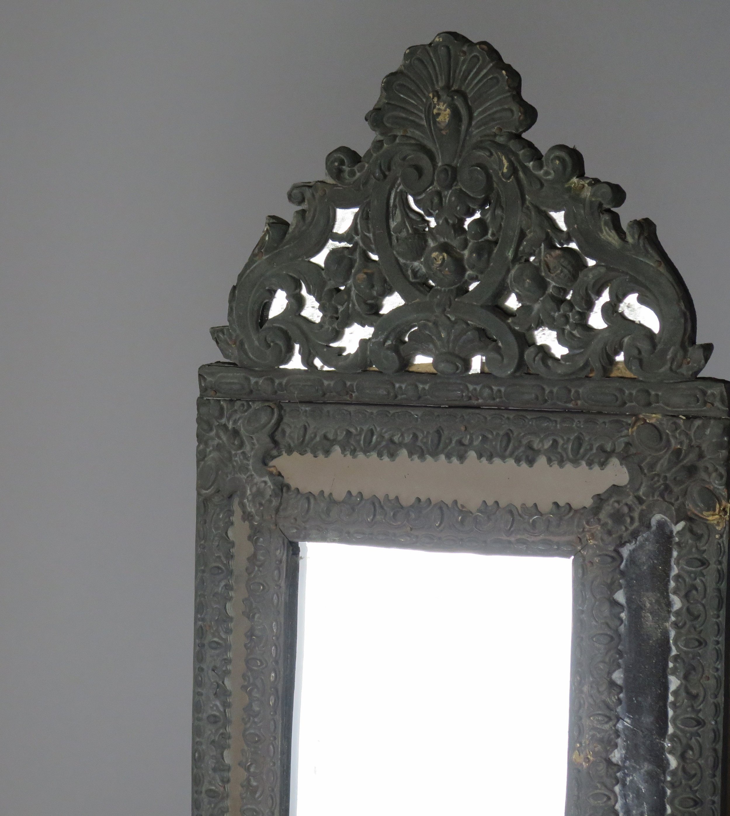 Napoleon III Brass Repoussé Cushion Mirror. France, circa 19th century.